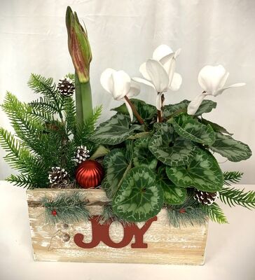 Amaryllis and Cyclamen in a wooden keepsake box.